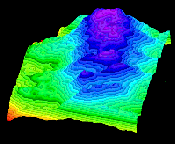 ![]() A la izquierda, aspecto de una imagen de interferencia del volcán Kiluaea. A la derecha, bloque-diagrama elaborado a partir de la interferometría radar |